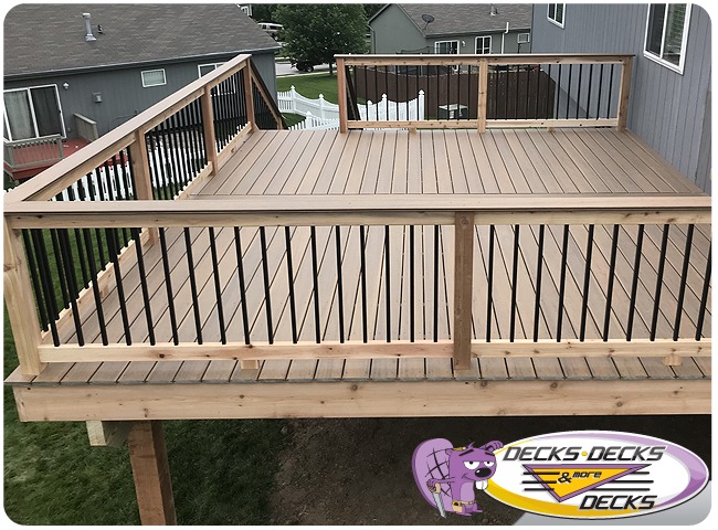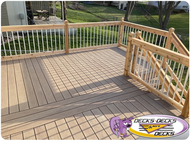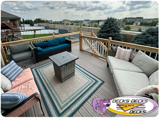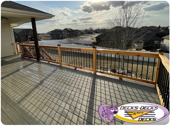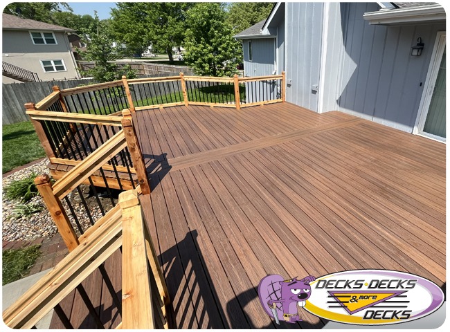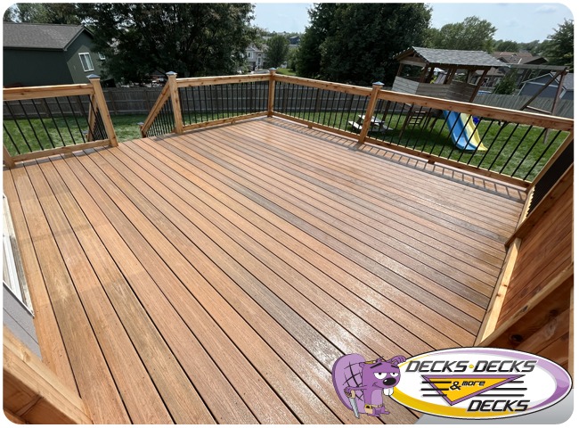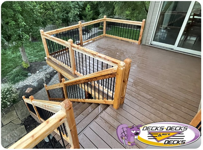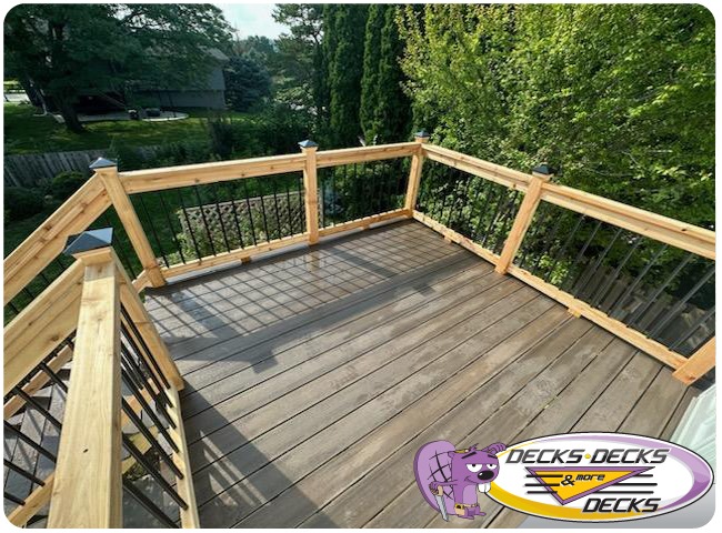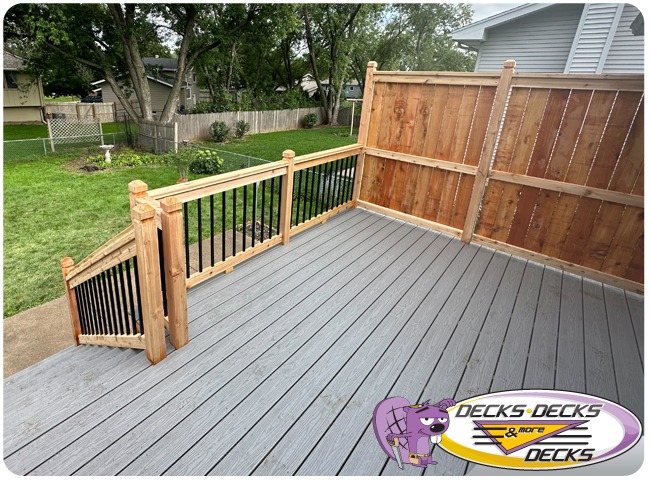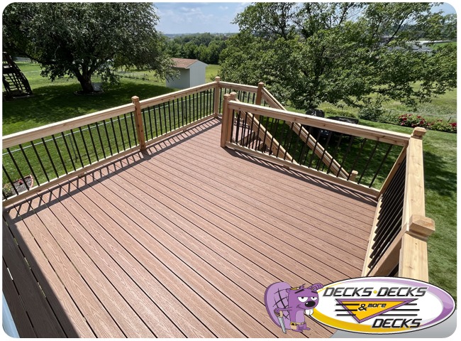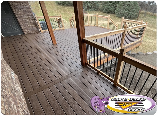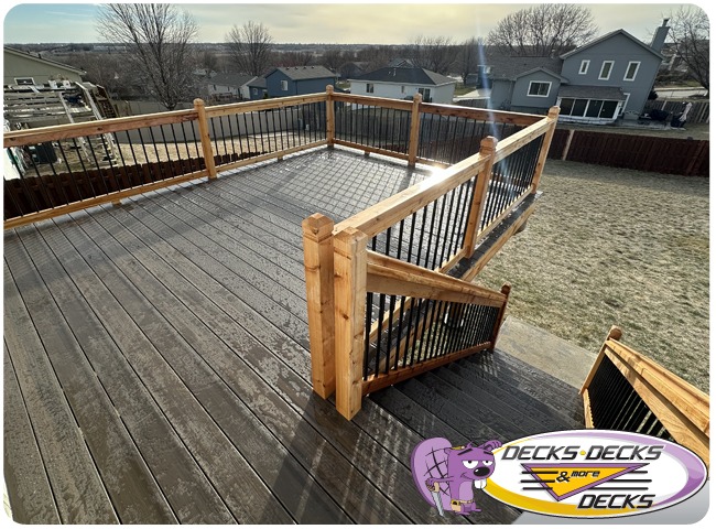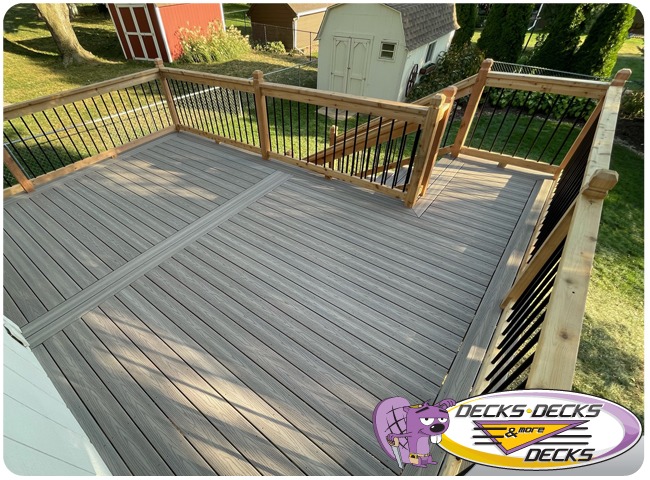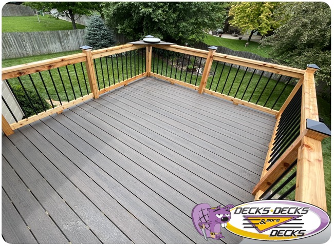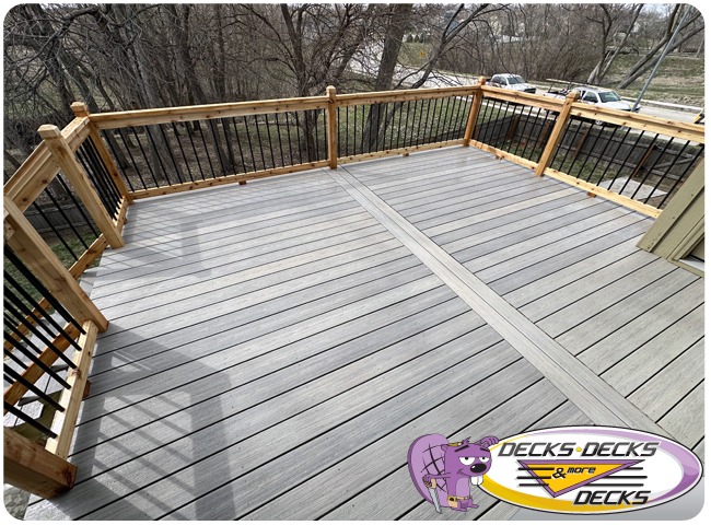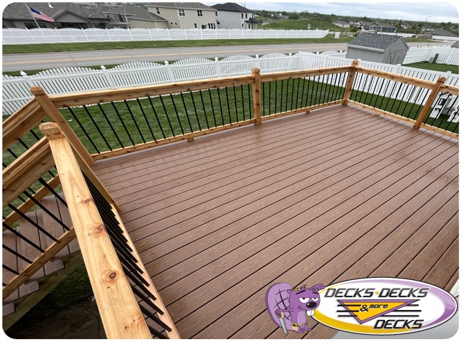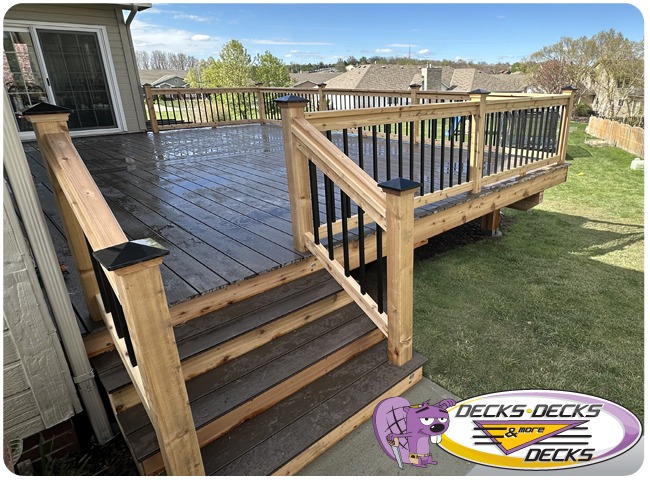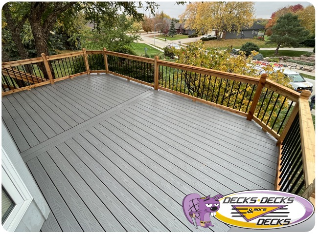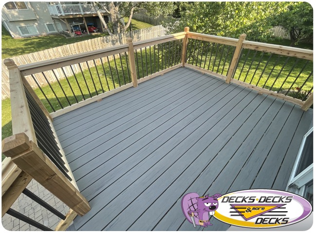 Mixed-material decks combine the natural warmth of cedar with the lasting performance of composite boards — and often the sleek style of aluminum railings. This blend creates a custom look that’s as durable as it is eye-catching. At Decks, Decks & More Decks, we specialize in designing and building mixed decks across Omaha that offer the best of both worlds: timeless charm and modern resilience.