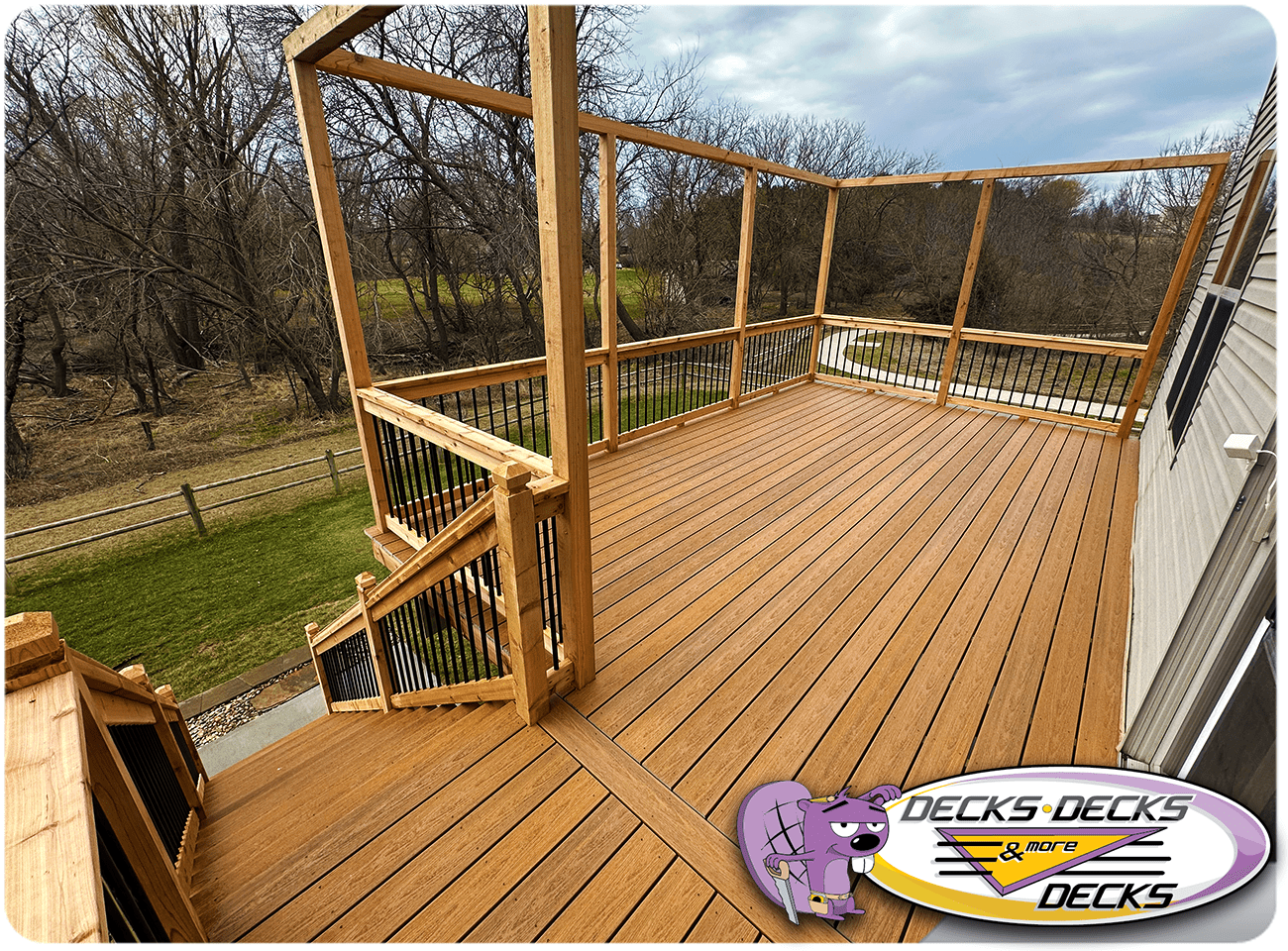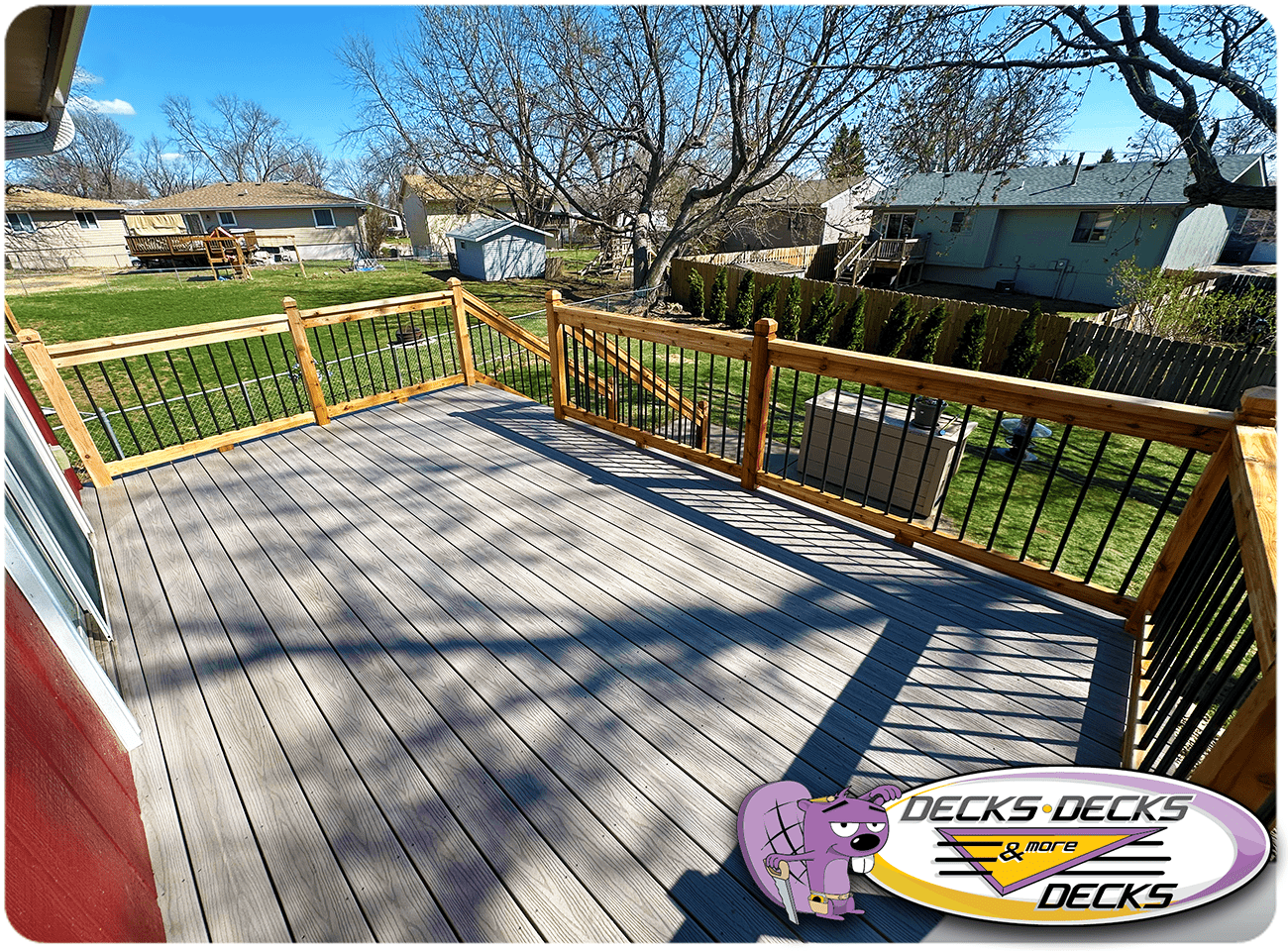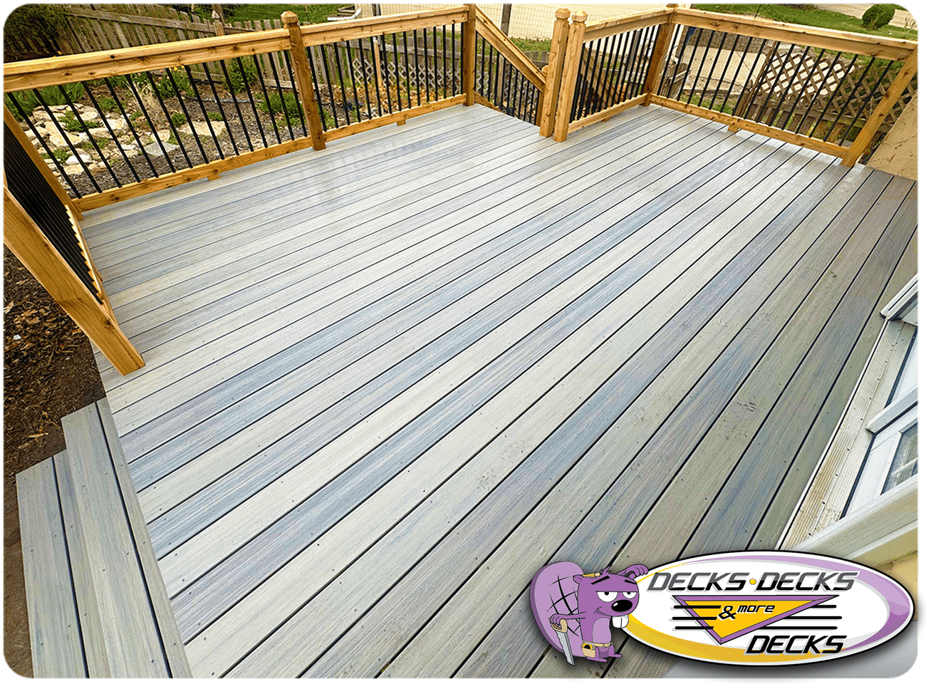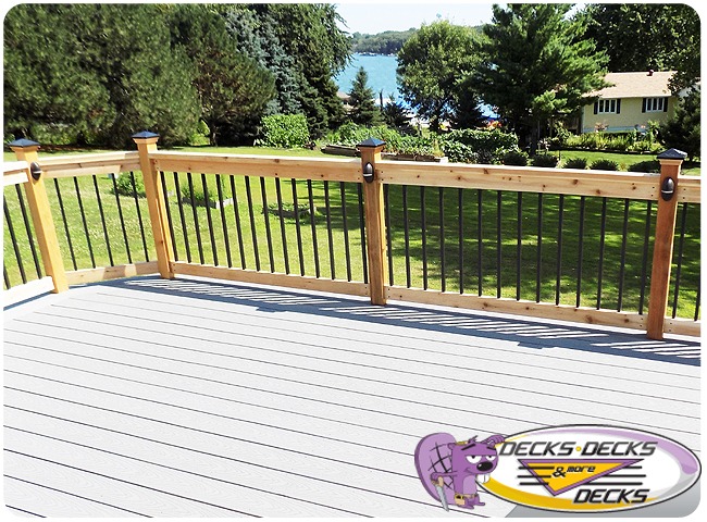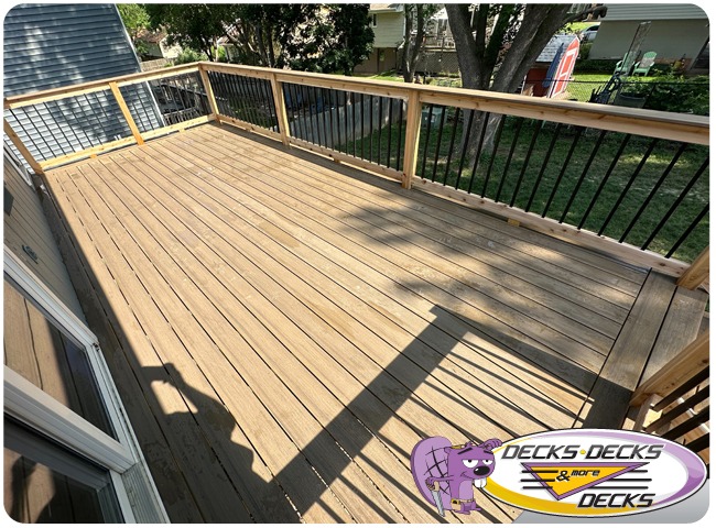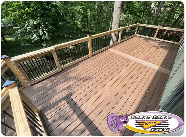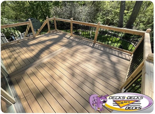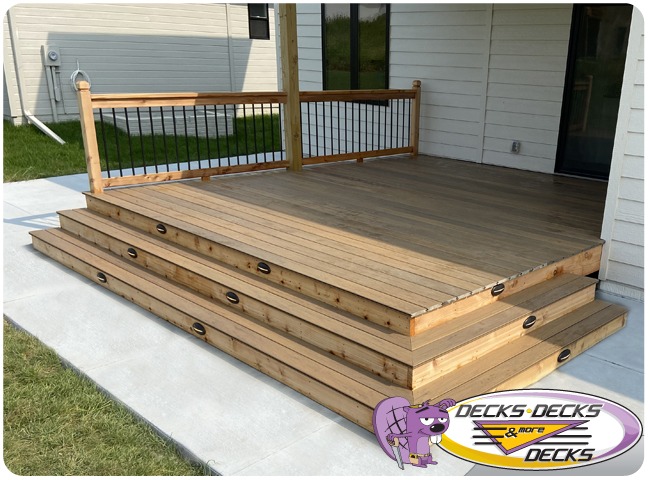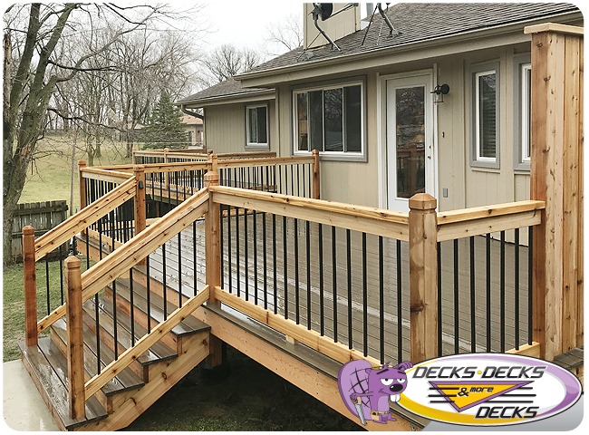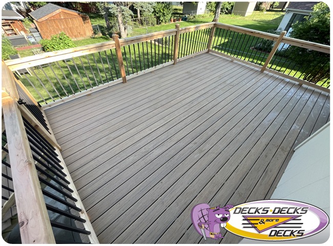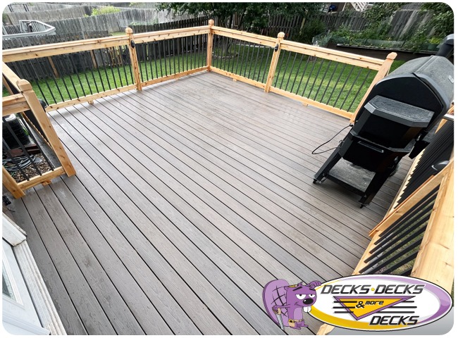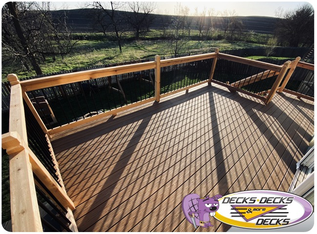 Mixed-material decks combine the natural warmth of cedar with the lasting performance of composite boards — and often the sleek style of aluminum railings. This blend creates a custom look that’s as durable as it is eye-catching. At Decks, Decks & More Decks, we specialize in designing and building mixed decks across Omaha that offer the best of both worlds: timeless charm and modern resilience.
