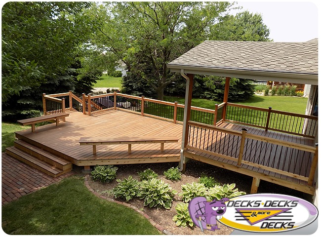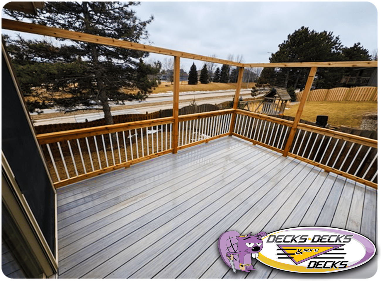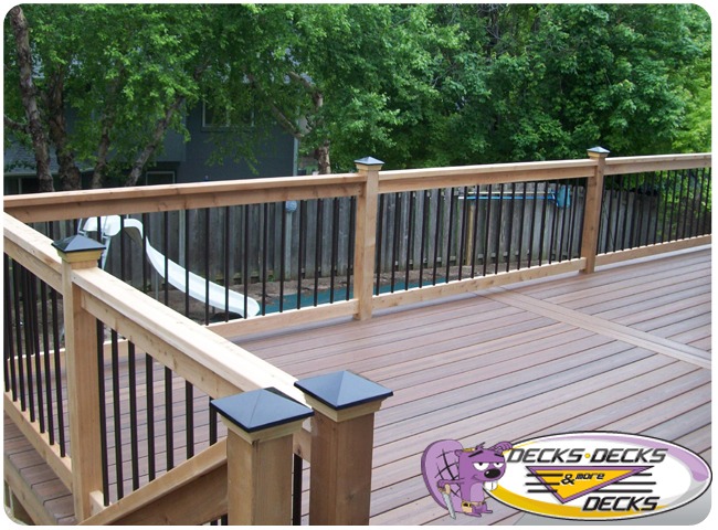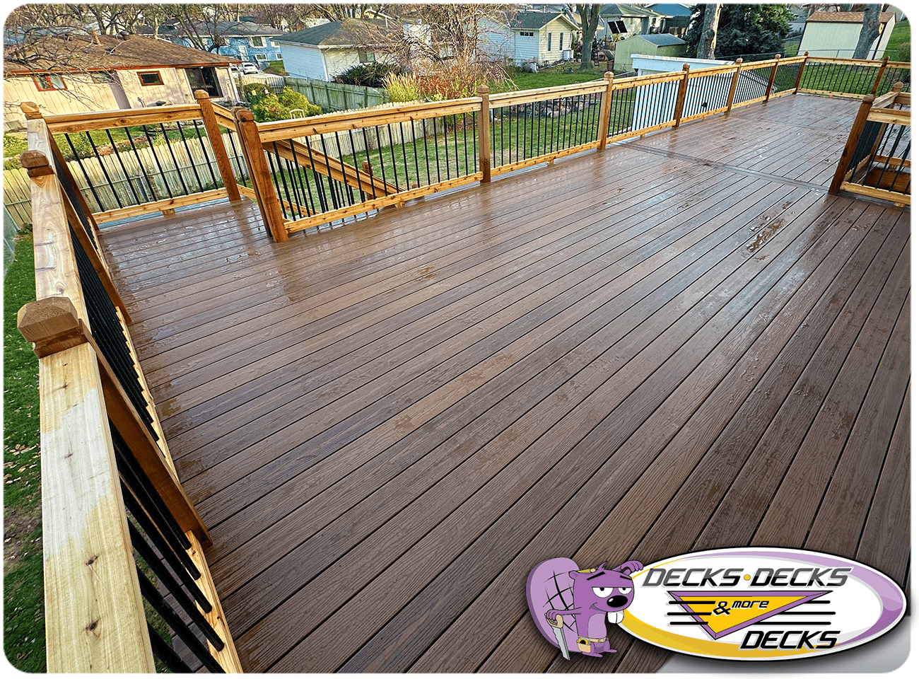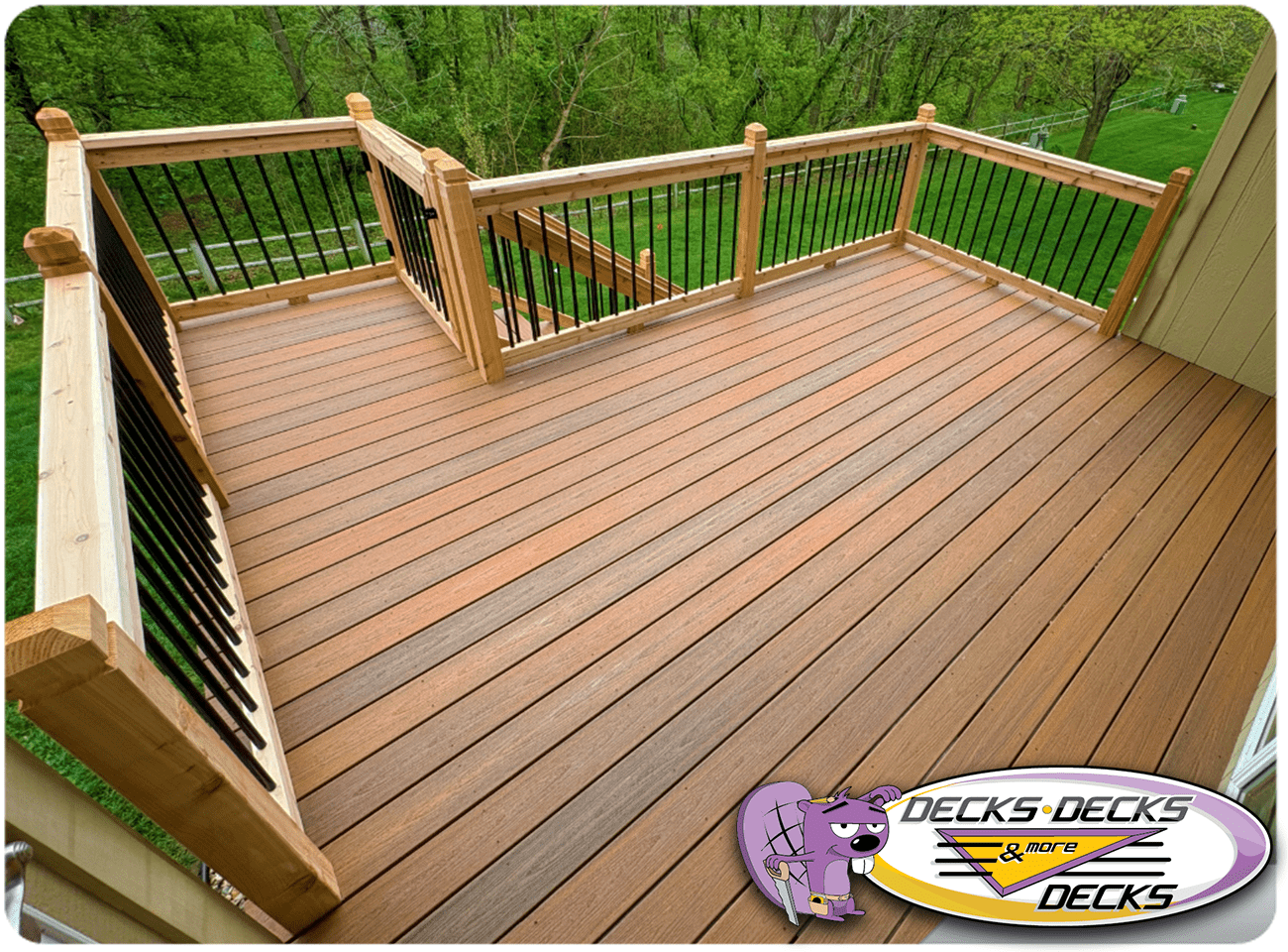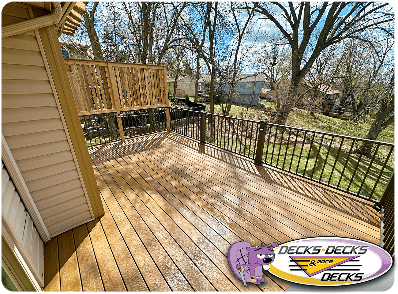 Mixed-material decks combine the natural warmth of cedar with the lasting performance of composite boards — and often the sleek style of aluminum railings. This blend creates a custom look that’s as durable as it is eye-catching. At Decks, Decks & More Decks, we specialize in designing and building mixed decks across Omaha that offer the best of both worlds: timeless charm and modern resilience.