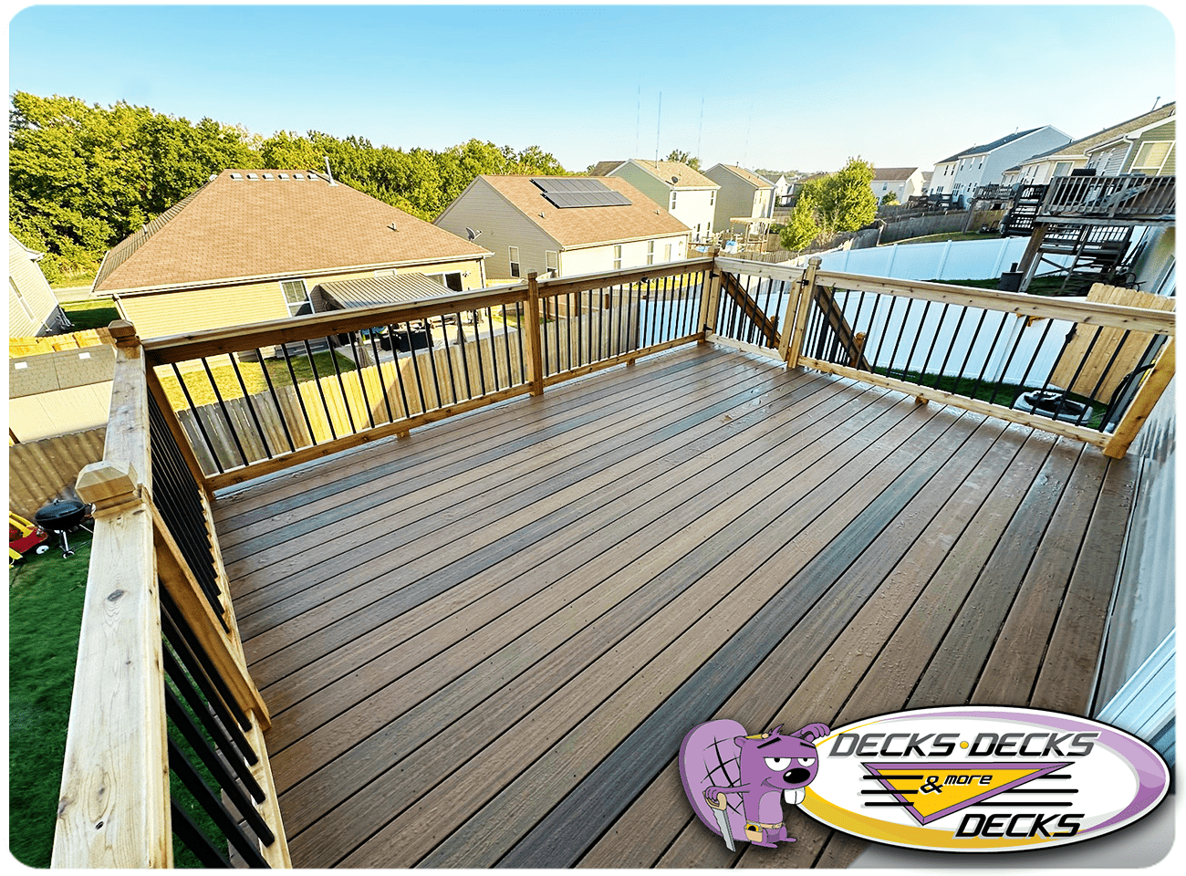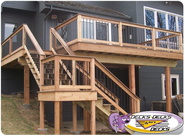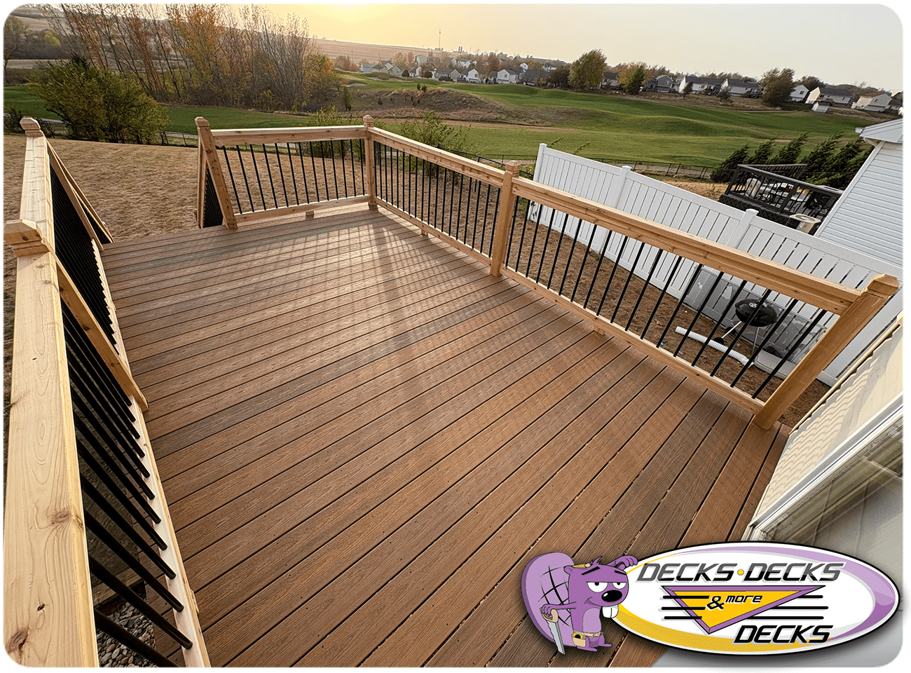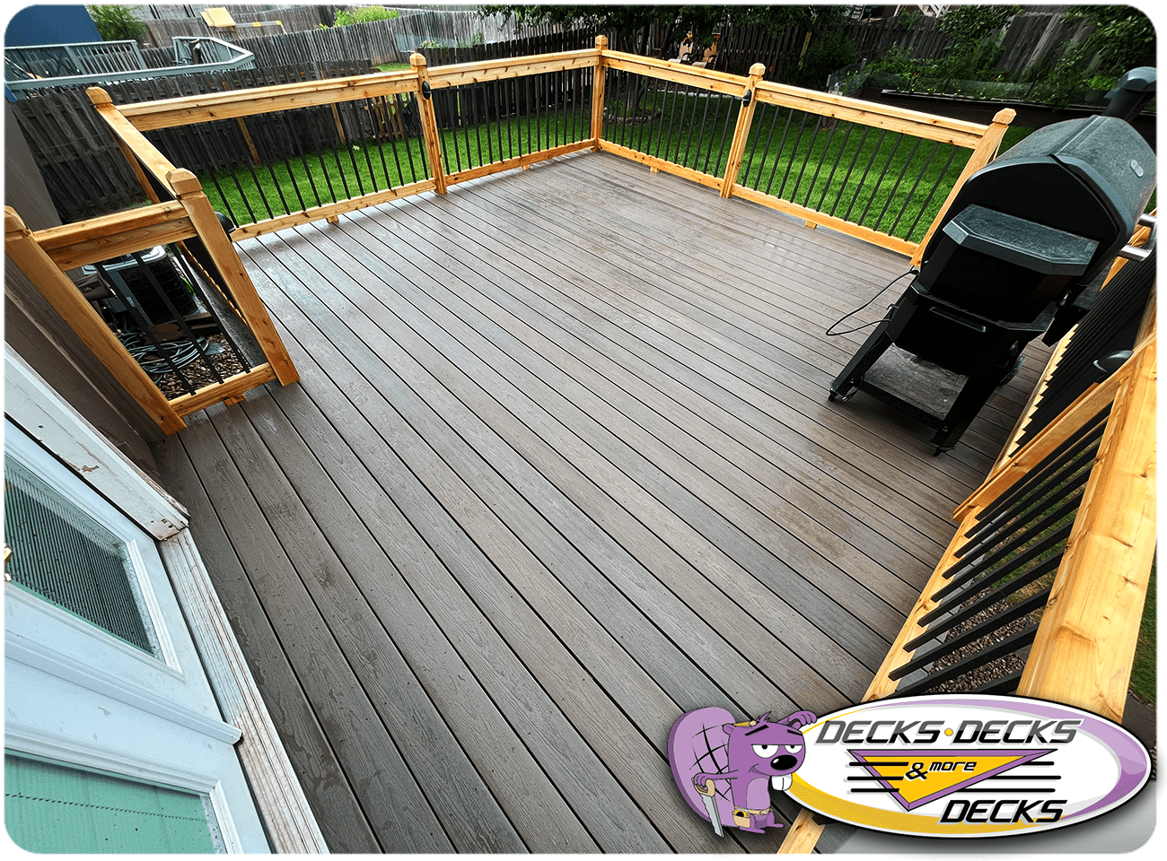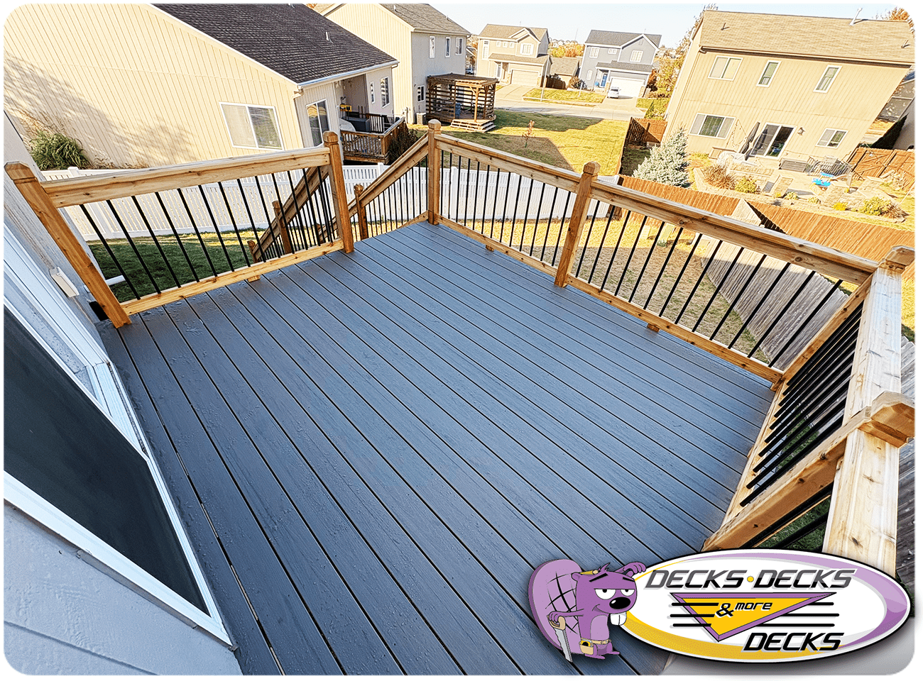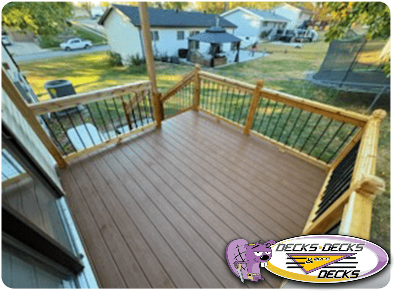 Mixed-material decks combine the natural warmth of cedar with the lasting performance of composite boards — and often the sleek style of aluminum railings. This blend creates a custom look that’s as durable as it is eye-catching. At Decks, Decks & More Decks, we specialize in designing and building mixed decks across Omaha that offer the best of both worlds: timeless charm and modern resilience.